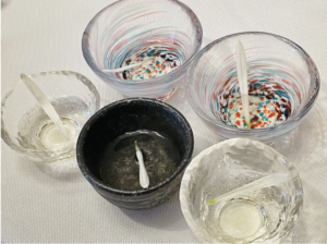 みんなで菊の花びらを浮かべて